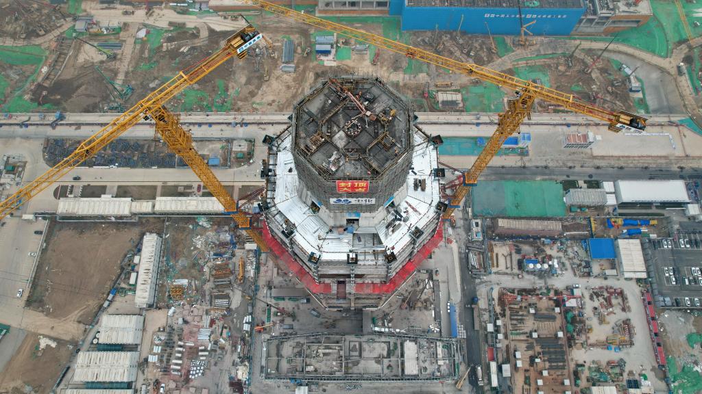 3月27日拍攝的中國(guó)中化大廈建設(shè)現(xiàn)場(chǎng)(無(wú)人機(jī)照片)。新華社記者牟宇 攝