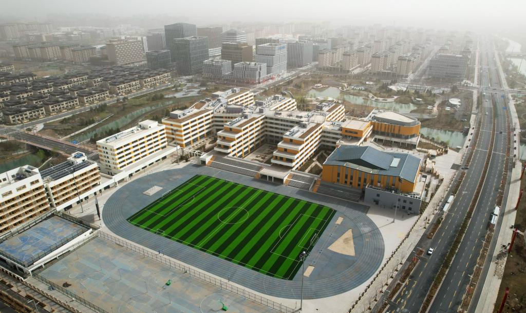 雄安新區(qū)容東片區(qū)內(nèi)的學(xué)校(3月28日攝,無(wú)人機(jī)照片)。新華社記者楊世堯 攝