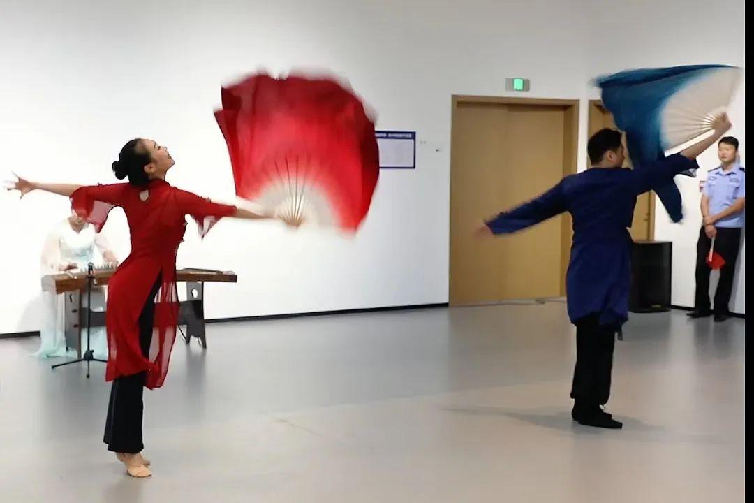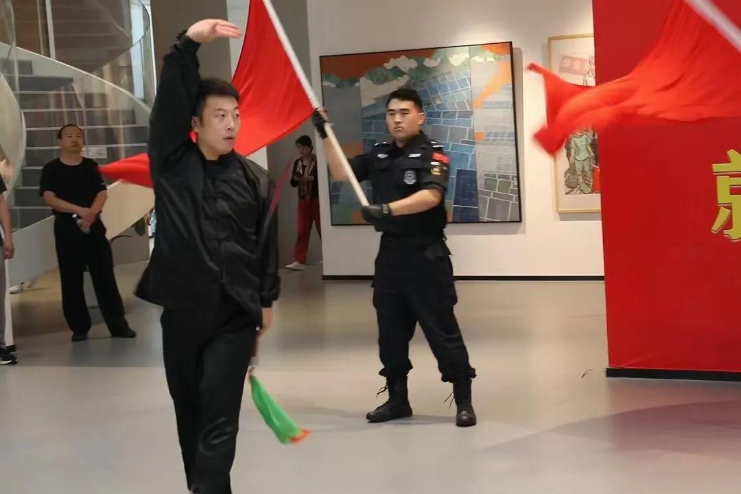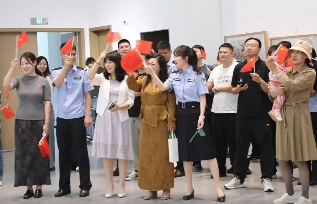 觀展結(jié)束后,伴隨著“我和我的祖國,一刻也不能分割。無論我走到哪里,都流出一首贊歌……”歌聲的響起,參展人員移步展廳中央,雄安公安文聯(lián)的表演者們伴隨著莊嚴(yán)激昂的旋律依次從人群中走出,《我和我的祖國》《追尋》《多情的土地》《我愛你中國》,一首首振奮人心的歌曲,唱出了慶祝新中國75周年華誕的喜悅,唱出了對(duì)祖國的自豪與驕傲。