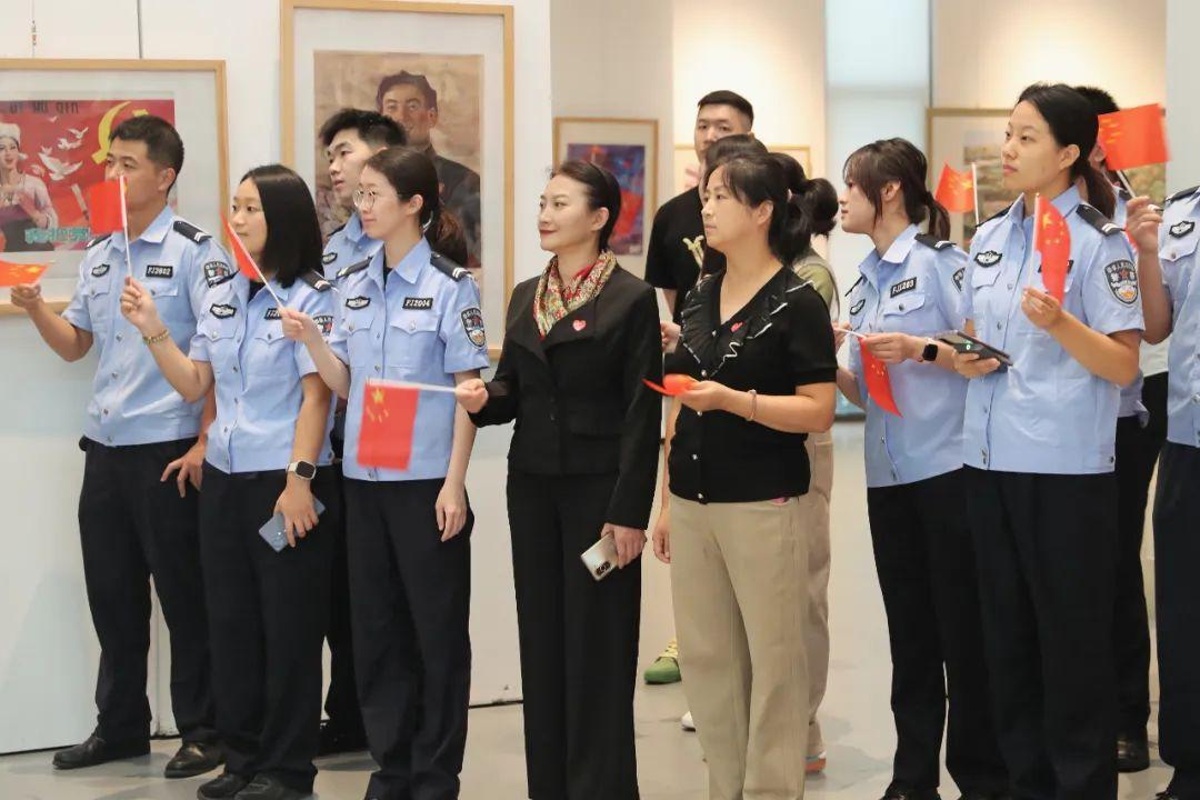此次展覽主要展示反映新中國成立以來一系列重大歷史事件宣傳畫、年畫,以及描繪新區(qū)建設(shè)發(fā)展的部分美術(shù)作品,百余幅作品如同歷史畫卷般在大家眼前徐徐展開。民輔警穿梭其間,仿佛穿越時(shí)空隧道,親眼見證了新中國從百廢待興到繁榮昌盛的壯麗圖景,一筆一劃,都仿佛是祖國前進(jìn)的鏗鏘足音,在大家心中激蕩起了強(qiáng)烈的共鳴。大家或駐足凝視,或低語交流,分享著各自對(duì)新中國發(fā)展歷程的感慨與認(rèn)識(shí)。