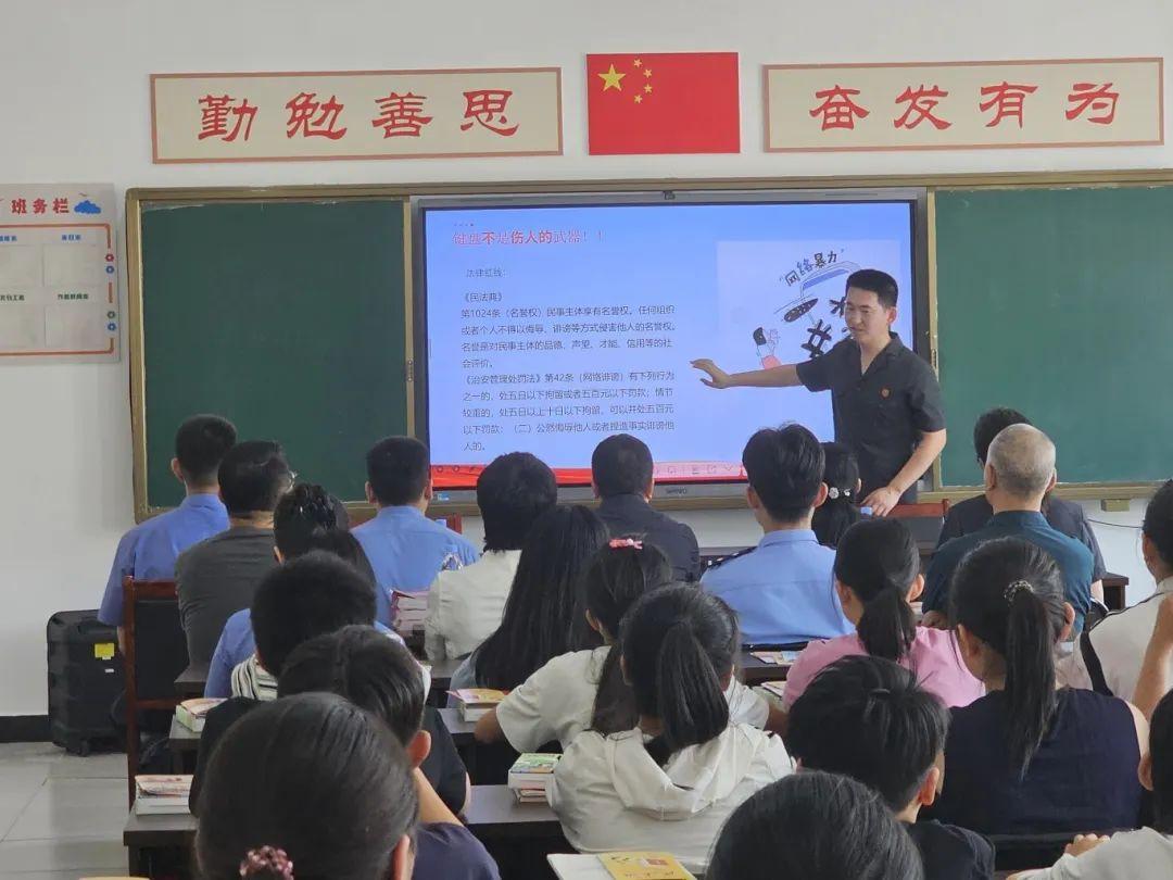活動(dòng)中,雄安站樞紐片區(qū)人民法庭法官助理、法治副校長(zhǎng)肖陽(yáng)以通俗易懂的語(yǔ)言,以案說(shuō)法的形式,從校園欺凌、網(wǎng)絡(luò)暴力、人身權(quán)利、未成年人犯罪等內(nèi)容切入,結(jié)合《中華人民共和國(guó)民法典》《中華人民共和國(guó)未成年人保護(hù)法》《中華人民共和國(guó)預(yù)防未成年人犯罪法》以及《中華人民共和國(guó)刑法》中保護(hù)未成年人權(quán)益和未成年人犯罪的相關(guān)法律法規(guī),深入淺出剖析了校園欺凌的危害性和法律后果,教育大家不做欺凌者、不做受害者、也不做旁觀者,自覺抵制校園欺凌,勇敢拿起法律武器保護(hù)自己?;顒?dòng)尾聲,法院干警們還為學(xué)生們發(fā)放了精心準(zhǔn)備的民法典、未成年人保護(hù)法等宣傳資料,希望同學(xué)們和家長(zhǎng)們課后能繼續(xù)深入學(xué)習(xí)法律知識(shí)。