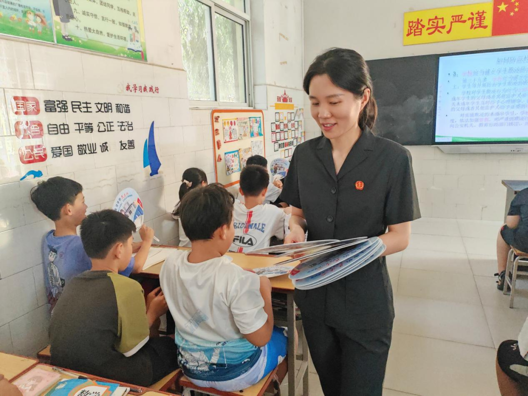 “說(shuō)不!”“告訴老師!”“尋求幫助!”——孩子們舉起小手爭(zhēng)先恐后地回答,在歡聲笑語(yǔ)中學(xué)會(huì)了自我保護(hù)的知識(shí)。除了積極的互動(dòng),現(xiàn)場(chǎng)還為每位同學(xué)發(fā)放了未成年人司法保護(hù)品牌“雄小荷”主題宣傳扇。小小的扇子不僅送來(lái)清涼,更將法治清風(fēng)送入校園,將法治的種子播撒在每個(gè)孩子心中。