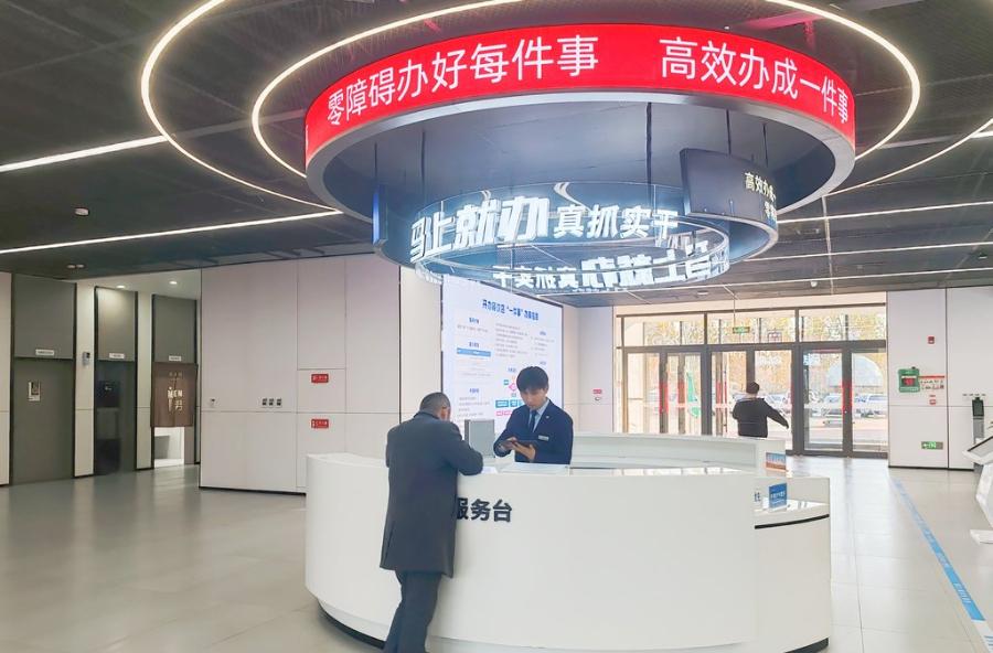 日前拍攝的雄安新區(qū)政務(wù)服務(wù)中心。在這里,辦事人只需在取號(hào)機(jī)前刷臉,系統(tǒng)即可自動(dòng)識(shí)別并關(guān)聯(lián)其身份信息,實(shí)現(xiàn)無(wú)證取號(hào)。河北日?qǐng)?bào)見習(xí)記者康曉博 攝