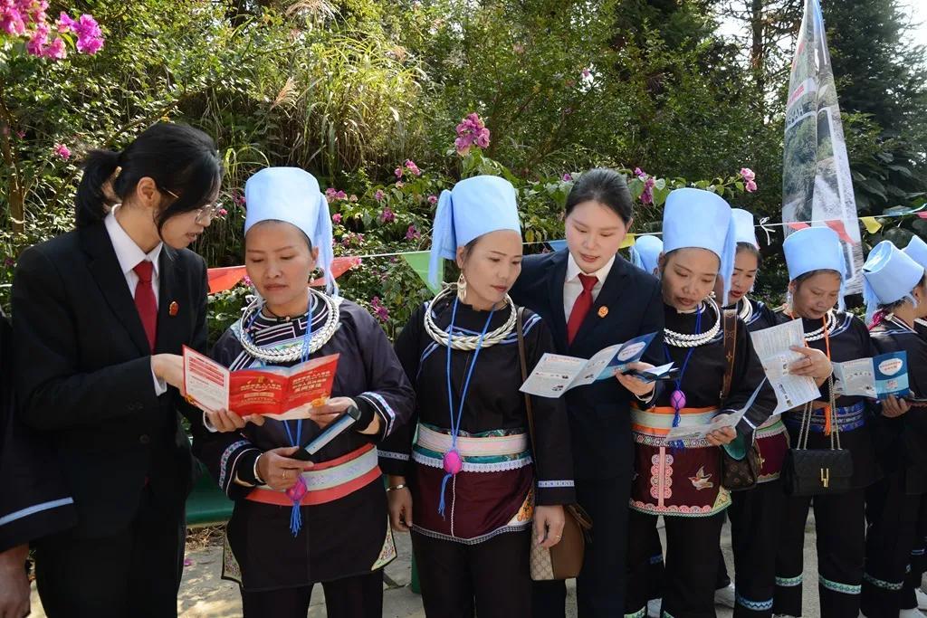 在水尾鄉(xiāng)建鄉(xiāng)四十周年慶典現(xiàn)場,榕江縣人民法院干警受到了群眾的熱烈歡迎。大家紛紛圍到干警身邊,認(rèn)真聆聽干警講解反間諜法、防范電信網(wǎng)絡(luò)詐騙、防范養(yǎng)老詐騙等法律知識,詳細(xì)閱讀法律宣傳資料,并就各自關(guān)心的法律問題向法院干警進(jìn)行了咨詢。