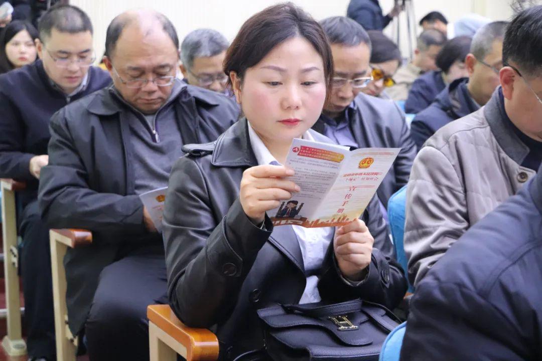 活動中,同步向旁聽人員發(fā)放了“三個規(guī)定”宣傳冊頁。