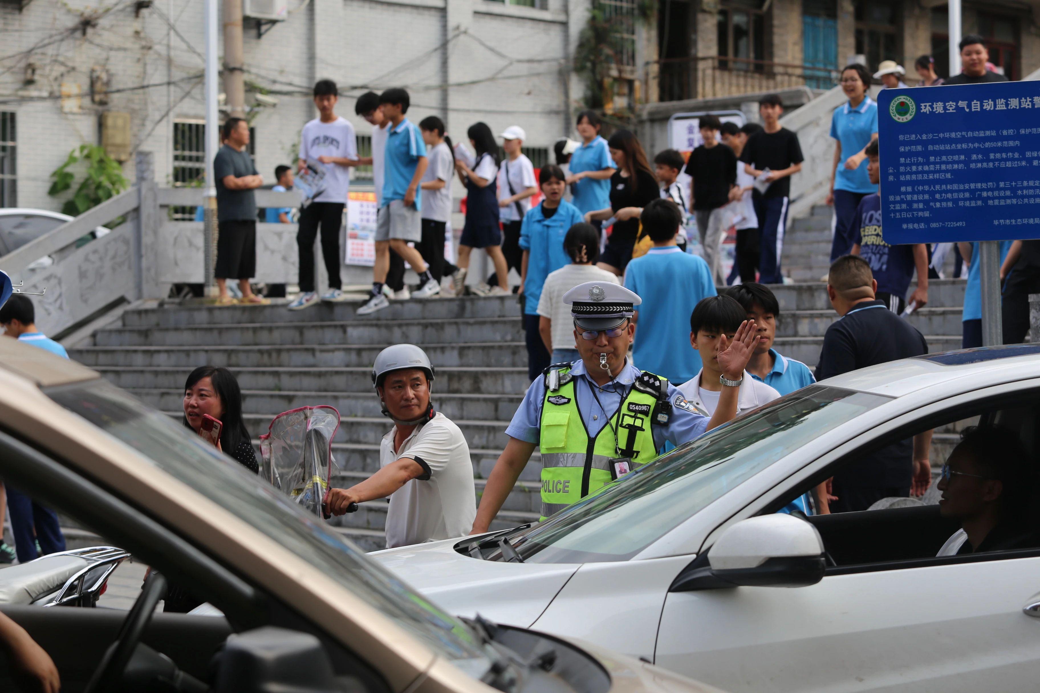 中考期間,貴州省畢節(jié)市公安局對考點學(xué)校周邊開展全方位安全隱患排查,廣泛發(fā)出考試期間暫停機械施工、噪聲干擾的呼吁;全程密切關(guān)注路況、及時疏導(dǎo),有效保障考生的通行效率與安全;采取“定點值守+車步巡防”的立體化防護模式,加大考點及周邊值守力度和巡邏頻次,提升見警率、管事率;緊盯考點,及周邊區(qū)域設(shè)置警戒區(qū),全面做好突發(fā)情況應(yīng)急準(zhǔn)備,全力筑牢考場安全防線。