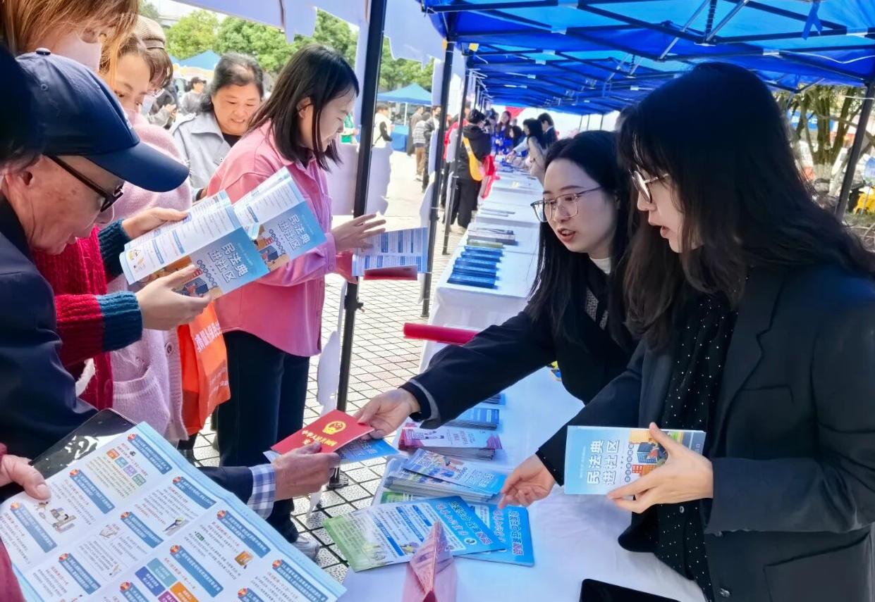 圖為觀山湖區(qū)司法局工作人員向群眾發(fā)放宣傳折頁。