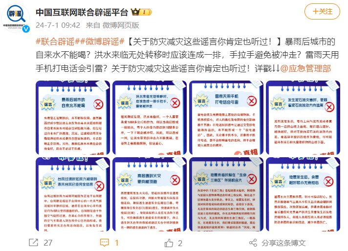 防汛救災(zāi)期間,多地網(wǎng)信、公安等部門通報典型謠言案例,造謠者根據(jù)違法情節(jié)受到行政拘留、罰款、批評教育等行政處罰,相關(guān)辟謠話題屢屢沖上各大平臺熱搜榜,有效對沖不實信息的消極影響。但不少輿論認(rèn)為,網(wǎng)絡(luò)謠言之所以屢禁不止,根源之一在于造謠成本低。為此,有關(guān)部門在依法處置個案的同時,還需健全完善網(wǎng)絡(luò)謠言治理機(jī)制,進(jìn)一步明確社會組織、網(wǎng)絡(luò)媒體、短視頻平臺等主體的法律責(zé)任,從而確保各方參與主體依法上網(wǎng)。另外,強(qiáng)化普法宣傳力度,及時發(fā)布辟謠文章和科普視頻,詳細(xì)介紹造謠手法和傳播方式,增強(qiáng)公眾對虛假信息的“免疫力”??偲饋碚f,事前宣傳教育、事中及時辟謠和事后法律威懾等多措并舉,是治理涉災(zāi)涉汛謠言的長效機(jī)制之一。