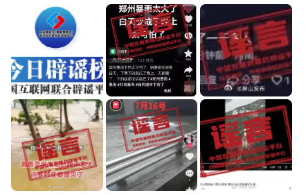 一是編造汛情災(zāi)情。造謠者通過視頻嫁接、圖片拼湊等手段,捏造暴雨、內(nèi)澇、滑坡、泥石流等災(zāi)情信息,并將位置定位在災(zāi)害發(fā)生地,具有迷惑性,容易讓人信以為真。如短視頻賬號“熟悉的背影”故意將網(wǎng)上下載的其他城市的暴雨視頻張冠李戴為鄭州,以目擊者口吻編造“鄭州暴雨下得太可怕,白天變成了晚上”等不實信息,誤導(dǎo)眾多網(wǎng)民留言表達(dá)擔(dān)憂;網(wǎng)傳“重慶奉節(jié)口前山體滑坡”,實為湖北秭歸一山體發(fā)生滑坡瞬間;而短視頻中熱傳的“百年難遇!濟(jì)南遭遇特大暴雨”視頻,經(jīng)濟(jì)南互聯(lián)網(wǎng)聯(lián)合辟謠平臺證實系謠言,視頻中的地鐵、街道等場景不在濟(jì)南。