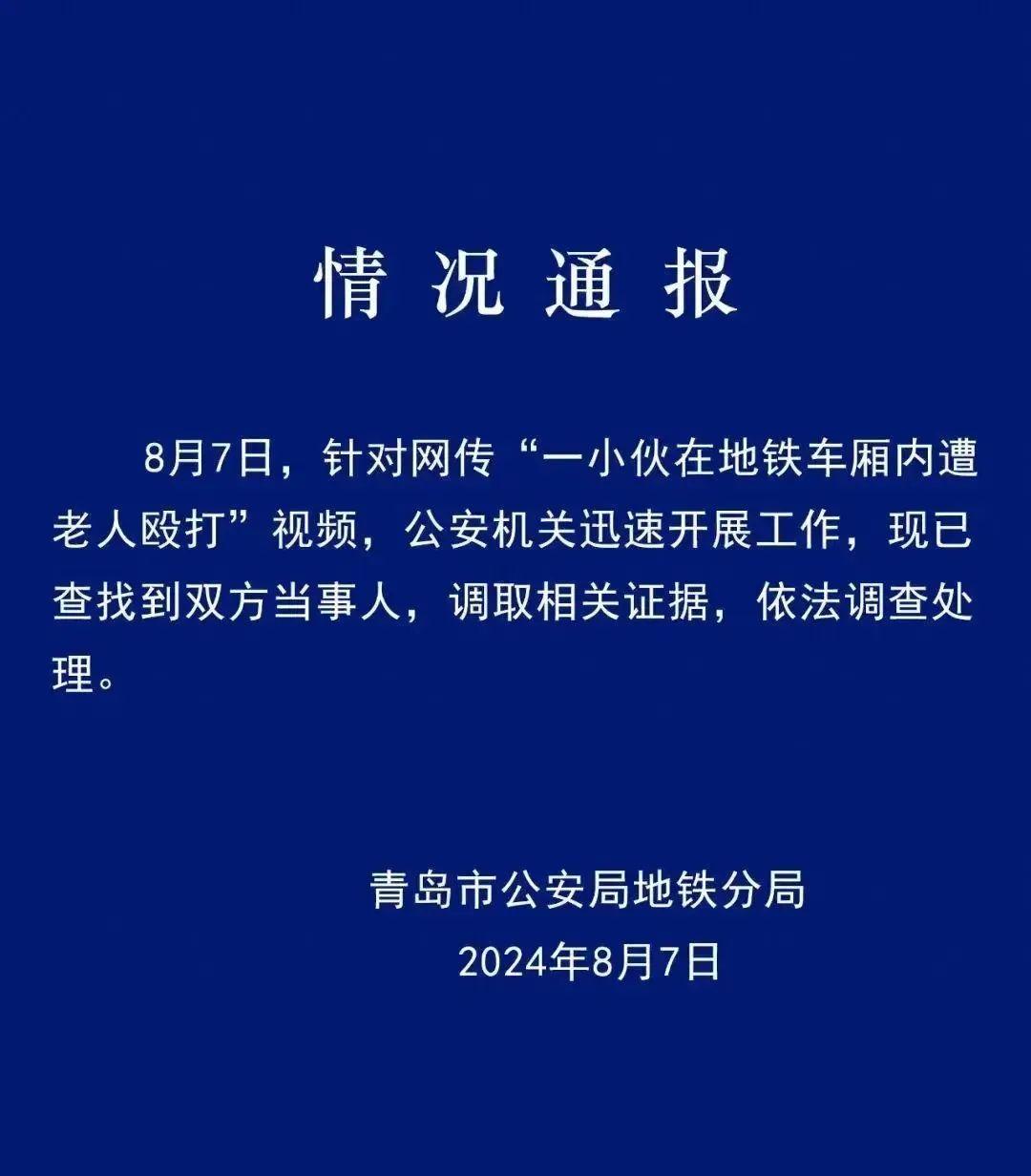 8月9日,微信公眾號“青島地鐵公安”再發(fā)通報詳述案情。通報稱,8月7日,和某城(男,23歲,無業(yè))乘坐地鐵期間對周圍多名乘客進行言語滋擾,在對翟某緒(男,69歲,退休職工)進行滋擾辱罵后,雙方發(fā)生肢體沖突,過程中和某城扯破翟某緒上衣,翟某緒擊打和某城面部。公安機關(guān)依法對和某城處以行政拘留處罰,翟某緒毆打和某城致其鼻骨粉碎性骨折,傷情損傷程度為輕傷二級,涉嫌故意傷害罪,依法對其采取刑事強制措施,案件正在進一步辦理中。