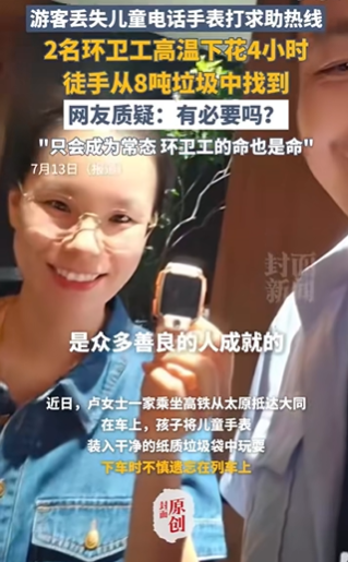 7月13日,“翻垃圾找兒童手表被質疑浪費人力”話題沖上微博熱搜第一。引發(fā)爭議后,大同市城管局副局長回應稱,此前也有過幫市民尋找失物的先例,此次并非特殊個例,“只要老百姓有需求,我們肯定去做”。該言論再次激發(fā)網民不滿。多數網民認為“有求必應”也要區(qū)分輕重緩急。同時,圍繞游客身份衍生出特權猜測,有網民爆料其為“深圳市寶安區(qū)人民法院政治部主任盧某”“深圳紀委干部”,對此涉事法院緊急辟謠。主流媒體圍繞公共服務邊界問題進行探討,如《大河報》刊文指出,當個別需求輕易撬動巨大公共力量時,公共資源或將面臨被無度索取的危機;央廣網認為,相關管理部門應建立更科學的價值評估體系,在滿足民眾需求與資源優(yōu)化間找到平衡。