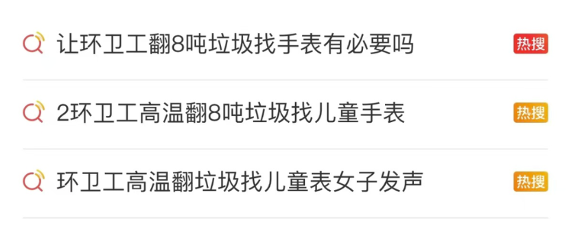 大同環(huán)衛(wèi)工翻垃圾幫游客找手表事件相關微博熱搜話題
