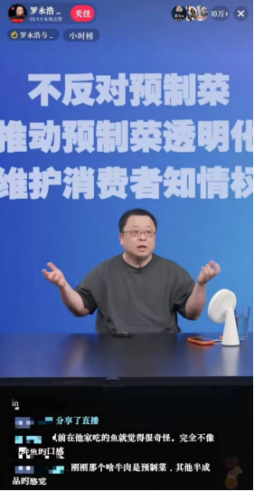 9月12日晚間,羅永浩在多平臺(tái)同步直播,開(kāi)播僅10分鐘其抖音直播間觀看人數(shù)已超10萬(wàn)。羅永浩在直播中以西貝使用的“凍海鱸魚(yú)”舉例,認(rèn)為食用這種經(jīng)過(guò)深度工業(yè)化處理的食材與大眾去餐廳追求新鮮的初衷顯然不符,且稱(chēng)西貝“是所有賣(mài)預(yù)制菜餐廳里賣(mài)最貴的”。羅永浩強(qiáng)調(diào),預(yù)制菜還沒(méi)有正式的國(guó)家標(biāo)準(zhǔn),不反對(duì)預(yù)制菜,而是主張“推動(dòng)中國(guó)預(yù)制菜行業(yè)透明化、保障消費(fèi)者的知情權(quán)”,并點(diǎn)贊了餐飲品牌老鄉(xiāng)雞公示菜品區(qū)分“現(xiàn)做”“半預(yù)制”“預(yù)制”加工等級(jí)的舉措。