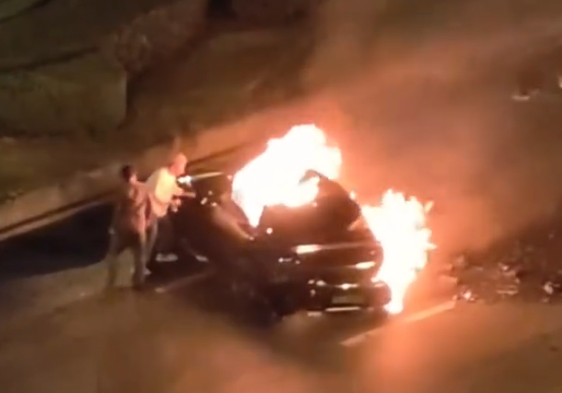 (網(wǎng)傳相關(guān)車(chē)輛失控后起火現(xiàn)場(chǎng)視頻截圖 來(lái)源:澎湃新聞)