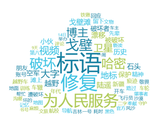 2025年9月12日,博主“略靠譜旅社”發(fā)布一則視頻,講述哈密戈壁灘內(nèi)“為人民服務(wù)”標(biāo)語(yǔ)的歷史和現(xiàn)狀。視頻發(fā)布后,網(wǎng)民除了積極表達(dá)愛(ài)國(guó)熱情外,還關(guān)注到了標(biāo)語(yǔ)周邊幾個(gè)惹眼的巨大“圓圈”,追問(wèn)是如何造成的。有網(wǎng)民表示是越野車(chē)愛(ài)好者造成的破壞。10月10日,“略靠譜旅社”再度發(fā)布一則視頻,講述其修復(fù)被破壞標(biāo)語(yǔ)的全過(guò)程,并對(duì)相關(guān)越野人士表達(dá)譴責(zé)。該博主贏得了網(wǎng)民的認(rèn)可和支持,一些人開(kāi)始深扒破壞者身份。10月11日,“@蟹武大D”等網(wǎng)民貼出疑似破壞者的賬號(hào)“新疆平頭哥(旅游無(wú)人區(qū)私人定制)”。不少網(wǎng)網(wǎng)民譴責(zé)破壞行為,要求當(dāng)?shù)赜嘘P(guān)部門(mén)查處相關(guān)責(zé)任人。當(dāng)晚,“新疆平頭哥(旅游無(wú)人區(qū)私人定制)”發(fā)聲否認(rèn)此事,并稱(chēng)將去修復(fù)標(biāo)語(yǔ)。不少網(wǎng)民堅(jiān)持認(rèn)為標(biāo)語(yǔ)是遭其破壞,呼吁警方介入。