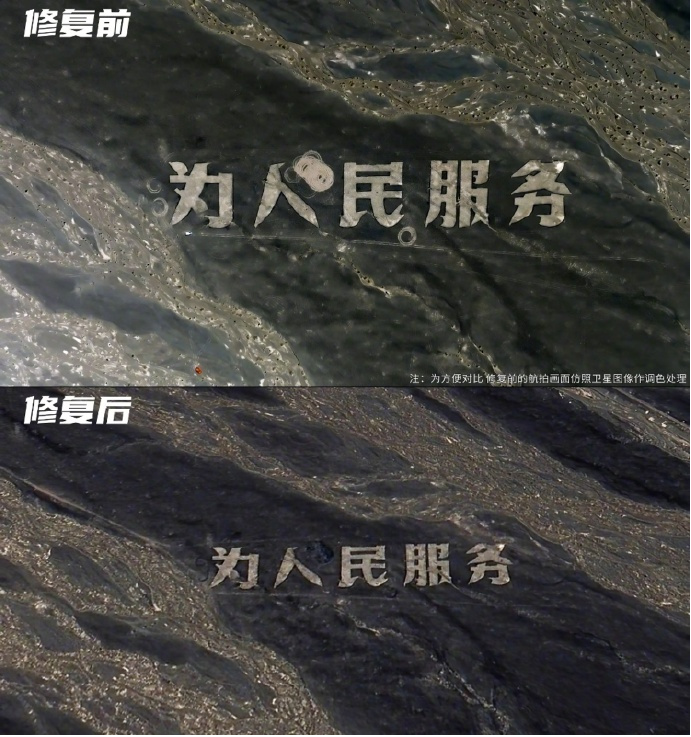 (新疆哈密戈壁灘“為人民服務(wù)”標(biāo)語(yǔ)遭破壞相關(guān)對(duì)比圖)