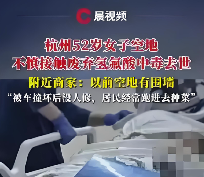 9月14日晚,杭州網(wǎng)民“LIV元寶”發(fā)文稱,其母親涂某某外出散步時(shí)誤踩到某化學(xué)品,當(dāng)場(chǎng)無(wú)法行走,送醫(yī)后被確診氫氟酸中毒,經(jīng)搶救無(wú)效離世,引發(fā)廣泛關(guān)注。次日,杭州市余杭區(qū)閑林街道辦事處通報(bào)稱,涂某某9月9日進(jìn)入閑林中路附近空地時(shí)不慎接觸廢棄氫氟酸,送醫(yī)后經(jīng)搶救無(wú)效于9月14日凌晨不幸身亡。公安機(jī)關(guān)已介入調(diào)查,生態(tài)環(huán)境部門已完成現(xiàn)場(chǎng)無(wú)害化處置。輿論就氫氟酸強(qiáng)腐蝕性等特點(diǎn)進(jìn)行熱議,并追問(wèn)其來(lái)源。9月16日,閑林派出所工作人員向媒體表示,警方已對(duì)此事立案調(diào)查,調(diào)查人員在現(xiàn)場(chǎng)再次挖出兩瓶氫氟酸,初步判斷非惡意投放。9月18日下午,“@余杭公安”發(fā)布通報(bào),查明氫氟酸系廢墟處原住戶艾某發(fā)從事外墻清洗工作的兒子艾某檳放置,2015年搬離時(shí)遺棄。涉案人員已被控制,案件正在進(jìn)一步偵辦中。輿論認(rèn)可警方通報(bào),并呼吁壓實(shí)?;返娜瘫O(jiān)管,堵住安全漏洞。