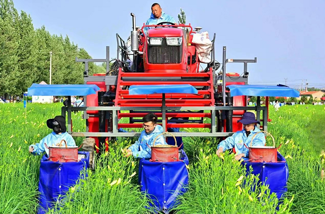 有人帶頭種,還有機器來輔助?!?021年,機器進行了幾次試驗,如今,可以下地試運行了?!鄙轿鬓r(nóng)業(yè)大學教授鄭德聰說,懸掛式黃花菜輔助采收機將進一步降低人工勞動強度,提高采收效率。