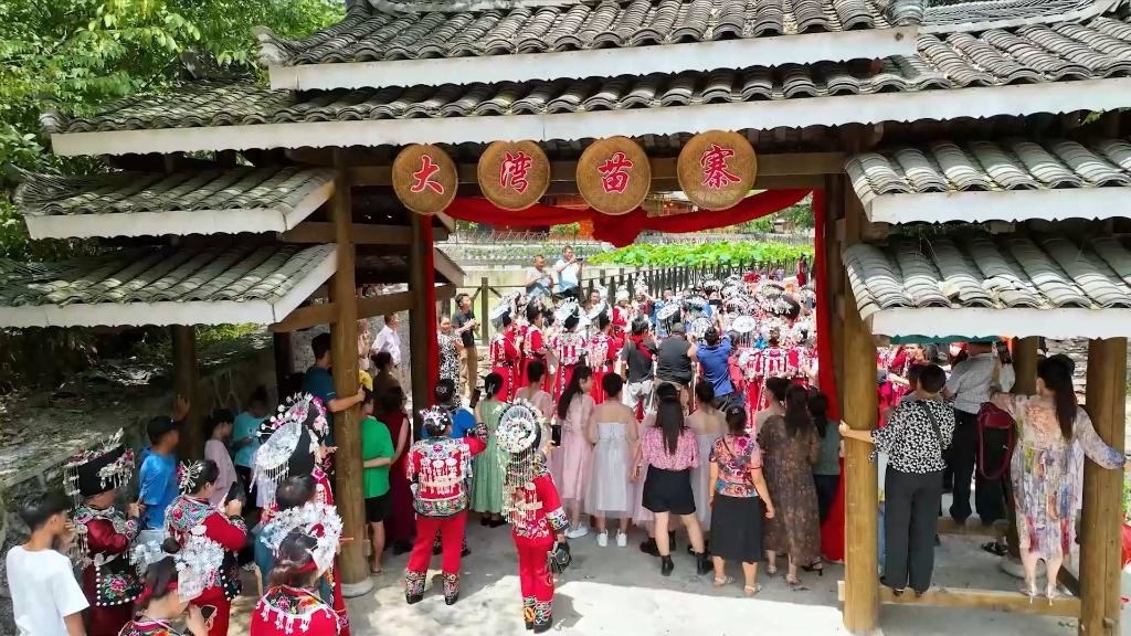 貴州省松桃縣盤信鎮(zhèn)的大灣苗寨,由于村寨宅院保存完好,民族風情濃厚,成了當?shù)匚慰偷牧咙c,每逢有喜慶節(jié)日,更會吸引大量的游客來到苗寨采風。