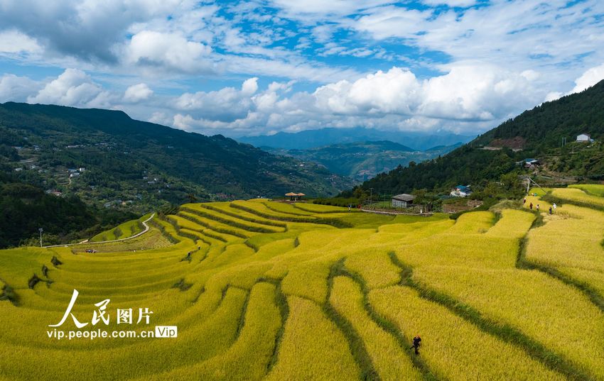 9月25日,湖北省宜昌市秭歸縣沙鎮(zhèn)溪鎮(zhèn)長(zhǎng)春村豐收的高山冷水稻田園美麗如畫。