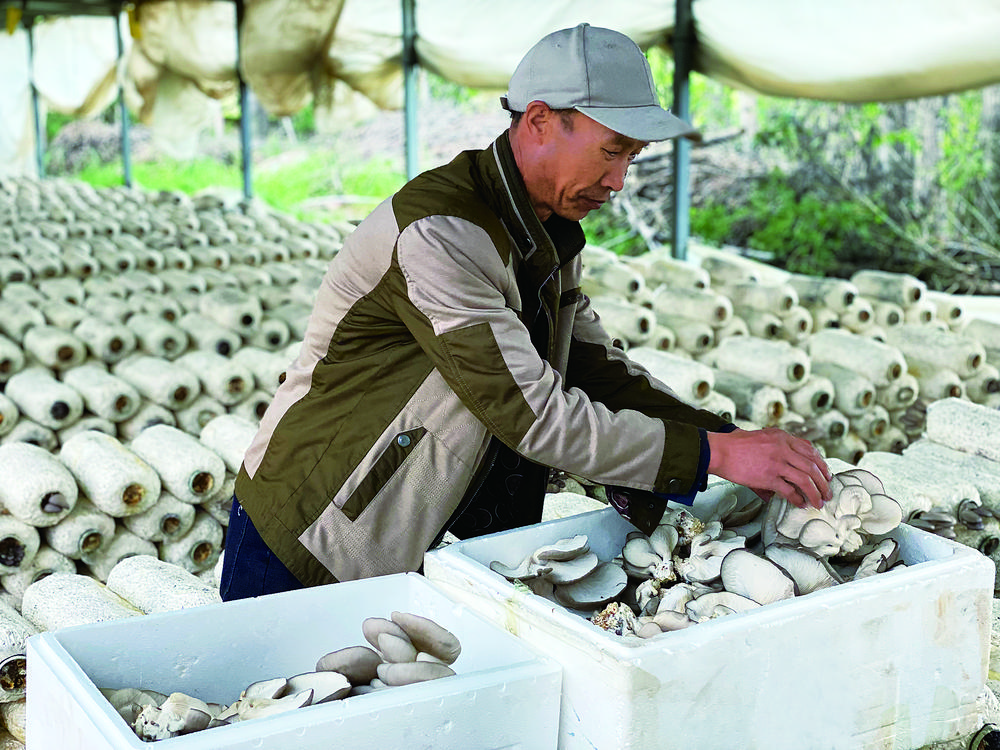 家庭農(nóng)場的主人喬吉科正帶領(lǐng)農(nóng)場工人采摘平菇,他們動(dòng)作嫻熟且規(guī)范有序,將摘下來的蘑菇放入塑料泡沫箱內(nèi),稱重后裝車,隨后銷往縣城各菜鋪及學(xué)校食堂等地。