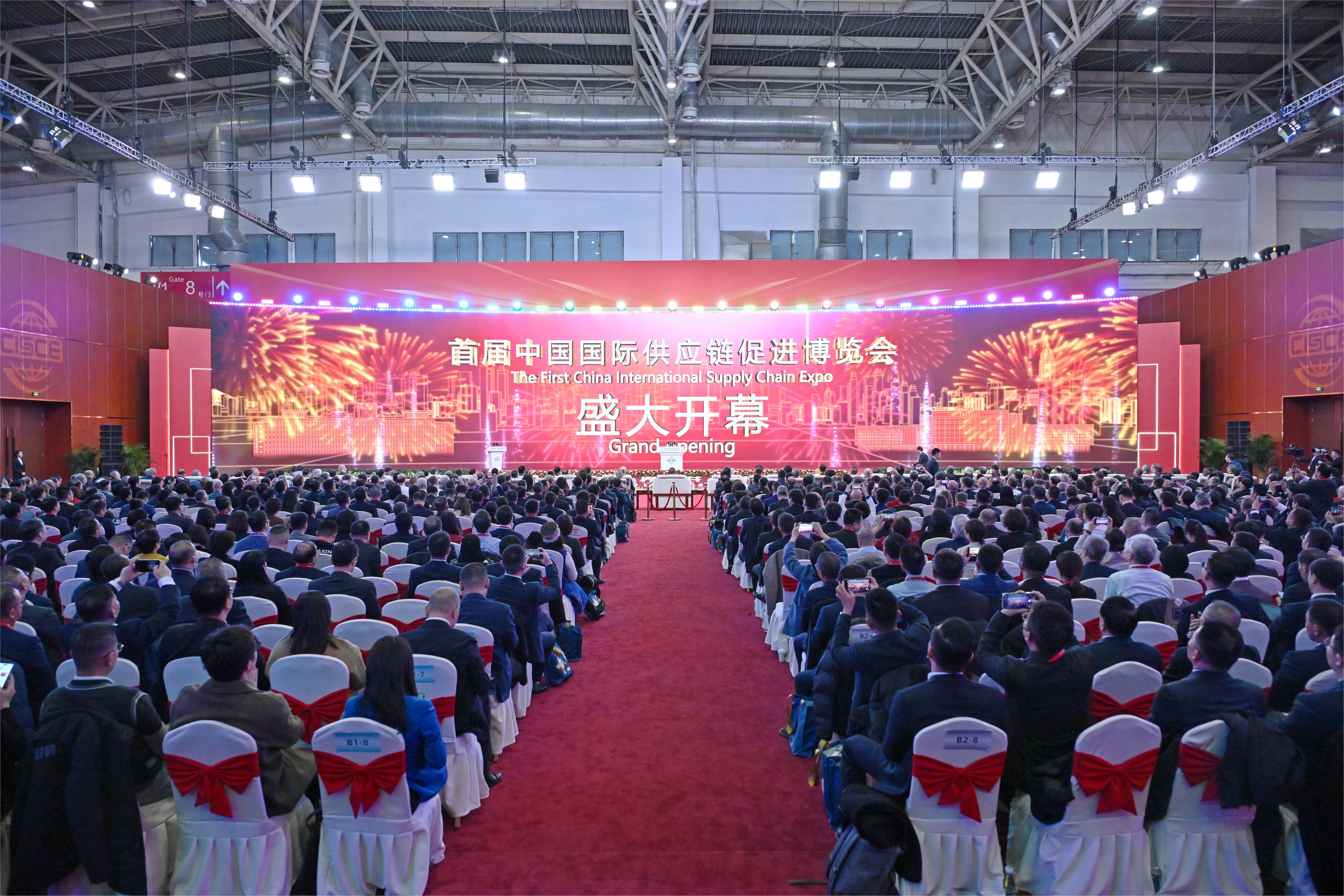 11月28日,首屆中國(guó)國(guó)際供應(yīng)鏈促進(jìn)博覽會(huì)(以下簡(jiǎn)稱“鏈博會(huì)”)開(kāi)幕式暨全球供應(yīng)鏈創(chuàng)新發(fā)展論壇在北京舉辦。來(lái)自世界90多個(gè)國(guó)家、地區(qū)和國(guó)際組織的政商學(xué)等各界代表1100多人出席開(kāi)幕式。