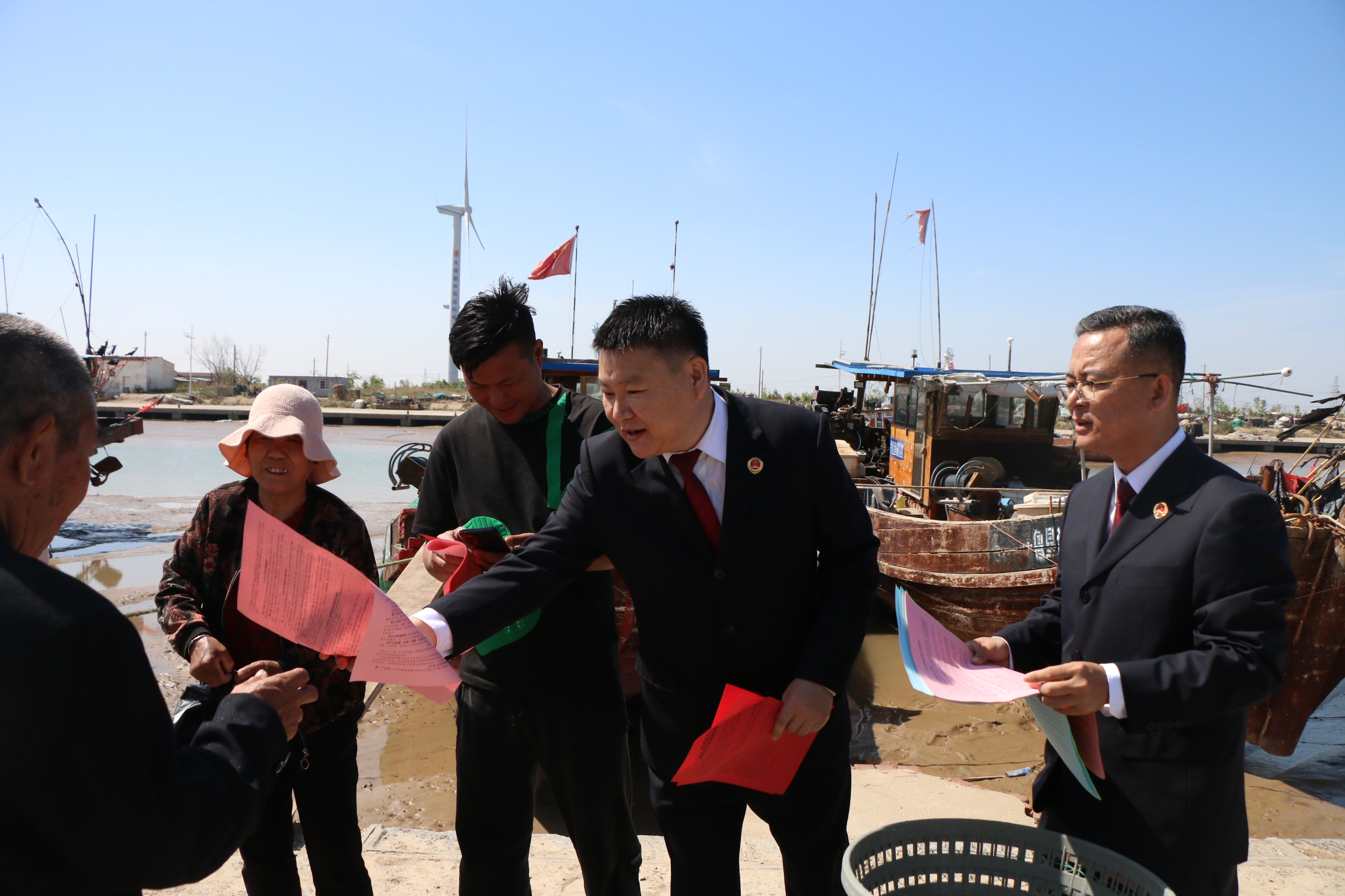 檢察官通過懸掛宣傳橫幅、發(fā)放宣傳冊、以案釋法宣講等方式,向漁民講解伏季休漁相關(guān)法律法規(guī)和案例,幫助其增強守法自覺和生態(tài)保護(hù)意識。