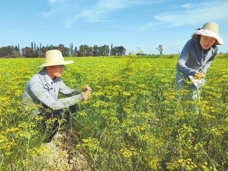 黃花農(nóng)場(chǎng)獨(dú)特的地理位置和干旱氣候,豐富的光熱資源,土壤堿性大、水質(zhì)礦化度高、干旱少雨,造就了種植優(yōu)質(zhì)茴香的天然優(yōu)勢(shì)。這里生產(chǎn)的茴香色澤鮮亮、籽粒飽滿、芳香濃郁、茴香酮、茴香腦含量高,深受?chē)?guó)內(nèi)外各大藥廠和調(diào)味品生產(chǎn)企業(yè)青睞。