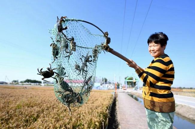 農(nóng)戶在曹妃甸區(qū)第四農(nóng)場(chǎng)開(kāi)展稻蟹立體種養(yǎng)