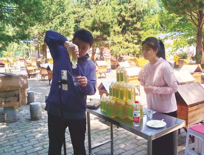 普社村第一場直播開始時(shí),大山深處的大片洋槐花已開到了尾聲。景嘉麗和“90后”鎮(zhèn)紀(jì)檢干部劉勇一起站在鏡頭前,小蜜蜂在旁邊“嗡嗡嗡”地飛來飛去,鎮(zhèn)上干部圍站在鏡頭背后,很多村民也趕來看熱鬧。隨著直播間涌進(jìn)來的網(wǎng)友越來越多,提問也越來越多,兩人逐漸放松:“家人們,我們背后的山上全是洋槐樹,這里沒有污染,洋槐花蜜的品質(zhì)特別好?!笔讏鲋辈ィ瑑蓚€(gè)小時(shí)賣出了300余單蜂蜜,價(jià)值2萬多元。對于一個(gè)地處大山深處的小鄉(xiāng)村而言,這個(gè)成績讓所有人喜出望外,也堅(jiān)定了高崖鎮(zhèn)繼續(xù)通過網(wǎng)絡(luò)直播幫助群眾銷售農(nóng)產(chǎn)品的信心,如今助農(nóng)直播成為該鎮(zhèn)常態(tài)化工作之一。