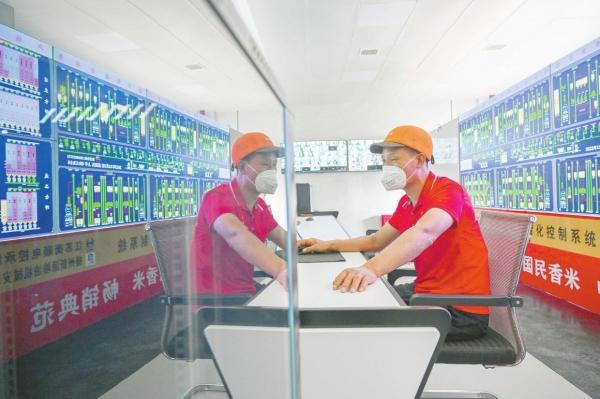 湖南生平米業(yè)股份有限公司的工作人員通過(guò)遠(yuǎn)程智能化自動(dòng)生產(chǎn)大米 記者 郭立亮 攝
