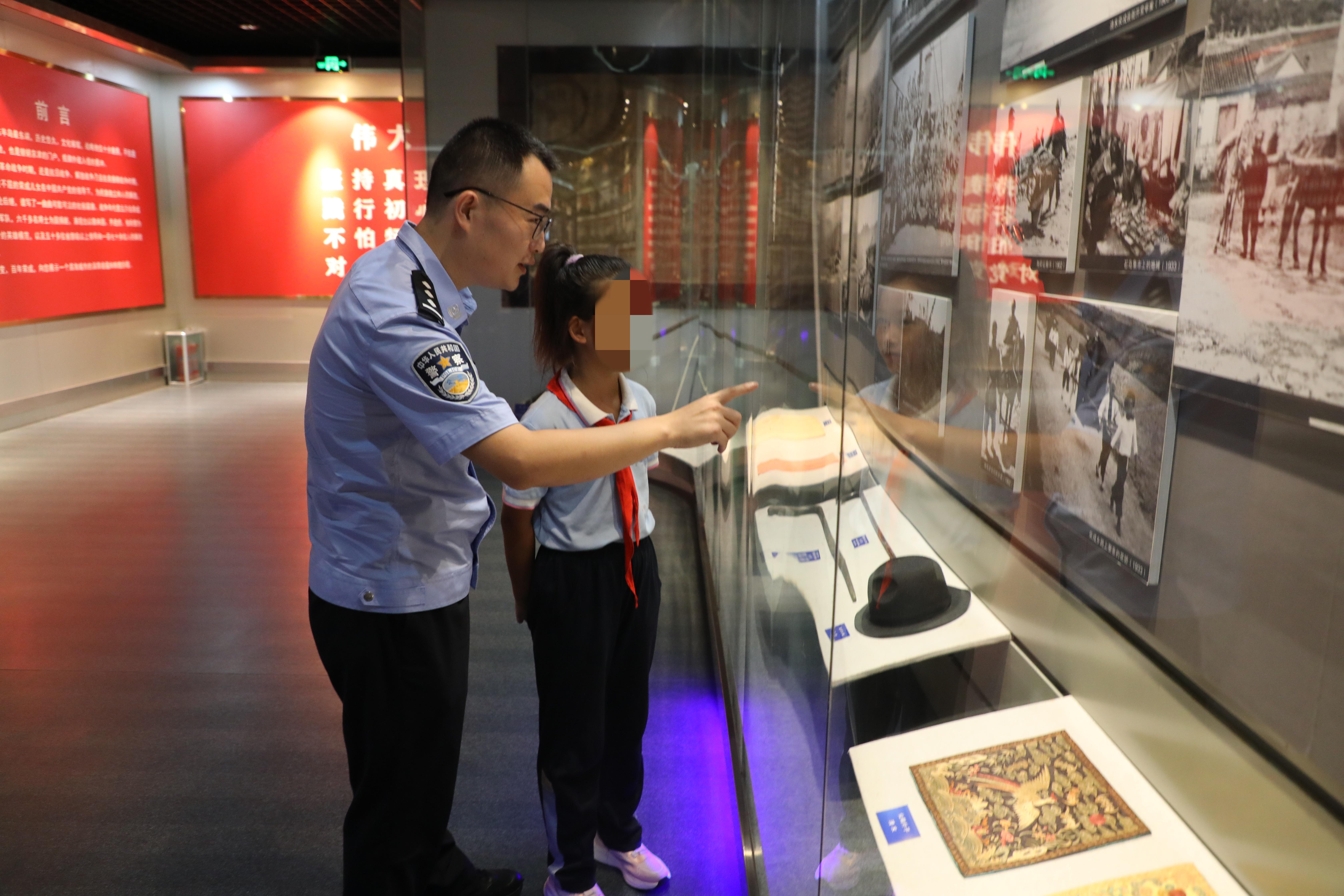 活動中,該站民警攜手駐地小學(xué)學(xué)生一起走進榮成市博物館“世紀(jì)榮成”展館,共同了解榮成從古至今的發(fā)展歷程,傳承紅色基因,弘揚愛國精神。整個展館共展出700多張珍貴照片、300多件珍貴文物資料,展示了榮成自辛亥革命以來百年社會進程、典型人物及榮成兒女取得的輝煌成就。通過一幅幅的歷史照片和抗戰(zhàn)時期歷史實物,生動再現(xiàn)了抗戰(zhàn)時期,無數(shù)英勇無畏的中華兒女,為了民族獨立和人民解放,浴血奮戰(zhàn)、前赴后繼的壯烈事跡。跟隨著解說員的講解,大家仿佛被帶入到那段艱苦卓絕、血雨腥風(fēng)的抗戰(zhàn)歲月,看到了戰(zhàn)爭背后鮮為人知的感人故事,心靈受到了洗禮,思想也得到了升華。