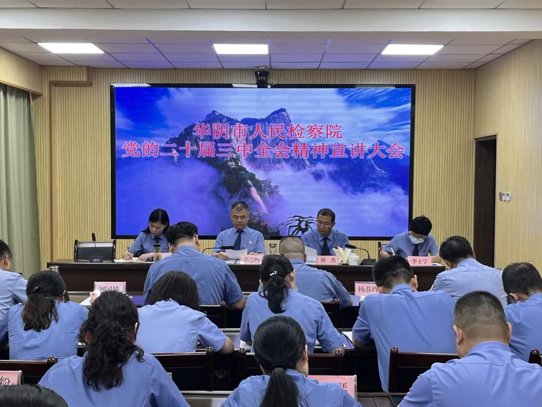 9月2日,陜西省渭南市華陰市人民檢察院組織召開學習貫徹黨的二十屆三中全會精神宣講大會,院黨組書記、檢察長燕崇綱作宣講報告,全體干警參會。
