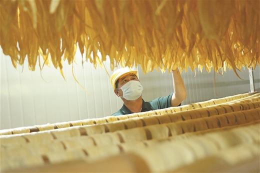工人在車間內(nèi)烘干腐竹 廖偉 攝