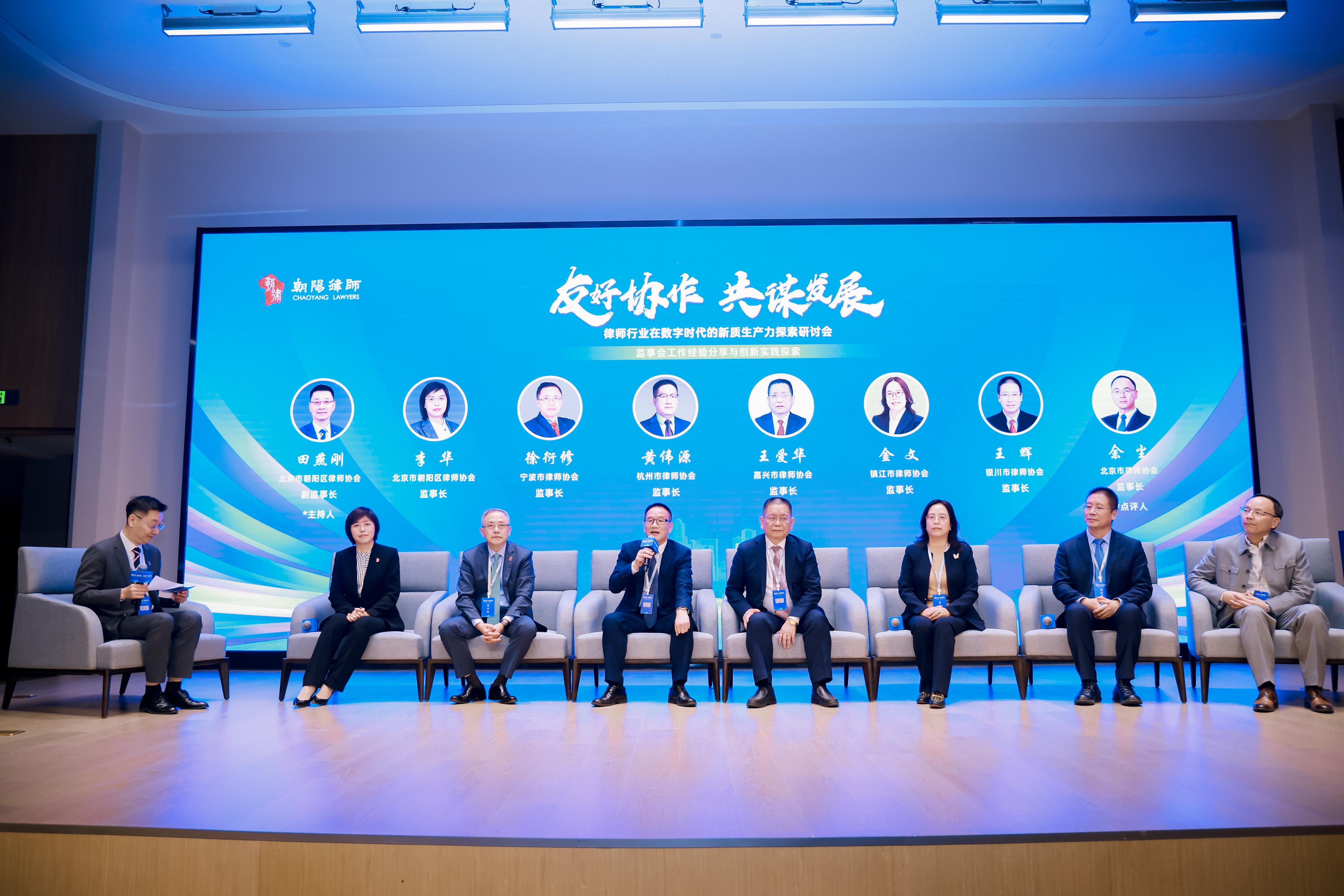在“律協(xié)監(jiān)事會工作經驗分享與創(chuàng)新實踐探索”為主題的對話中,朝陽區(qū)律師協(xié)會副監(jiān)事長田燕剛主持,邀請朝陽區(qū)律師協(xié)會監(jiān)事長李華、寧波市律師協(xié)會監(jiān)事長徐衍修、杭州市律師協(xié)會監(jiān)事長黃偉源、嘉興市律師協(xié)會監(jiān)事長王愛華、鎮(zhèn)江市律師協(xié)會監(jiān)事長金文、銀川市律師協(xié)會監(jiān)事長王輝等進行工作交流,分享經驗和成果。特邀北京市律師協(xié)會監(jiān)事長余塵點評。