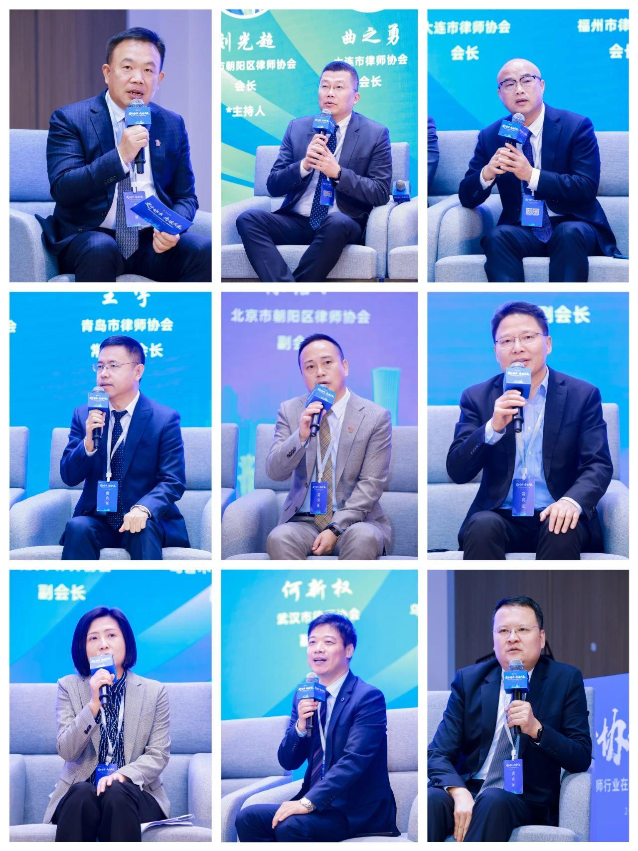 在“律師協(xié)會協(xié)同服務助力律師行業(yè)良性發(fā)展”為主題的對話中,朝陽區(qū)律師協(xié)會會長劉光超主持,邀請大連市律師協(xié)會會長曲之勇、福州市律師協(xié)會會長許明、青島市律師協(xié)會常務副會長王宇、朝陽區(qū)律師協(xié)會副會長林悟江、蘇州市律師協(xié)會副會長趙雨兵、南京市律師協(xié)會副會長李淑君、武漢市律師協(xié)會副會長何新權、烏魯木齊市律師協(xié)會副會長海瑞等共同探討協(xié)同合作助力行業(yè)發(fā)展。