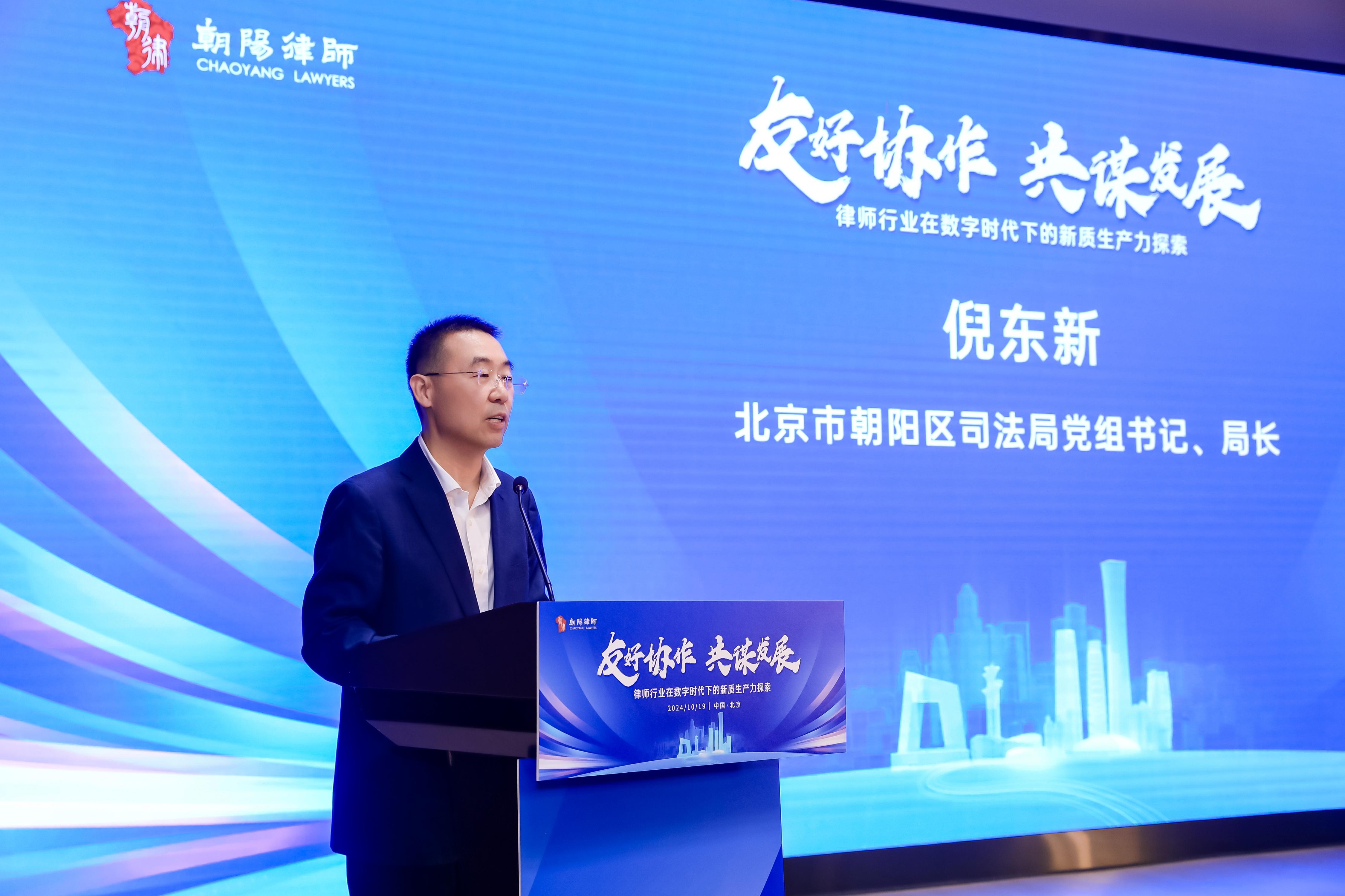 北京市朝陽區(qū)司法局黨組書記、局長倪東新在致辭中表示,朝陽區(qū)一直高度重視律師行業(yè)發(fā)展,努力打造法律服務業(yè)高地,充分保障律師權益,不斷完善律師管理體制機制,積極為律師拓展業(yè)務、依法執(zhí)業(yè)搭建平臺。在當前數(shù)字經濟迅猛發(fā)展的時代背景下,在法律服務業(yè)深化發(fā)展的背景下,希望律師行業(yè)立足新發(fā)展理念,助力新發(fā)展格局,做服務經濟社會發(fā)展的推動者,做堅持公平正義維護安全穩(wěn)定的守護者。認真履行職責使命,講政治顧大局,講誠信守規(guī)矩,推動解決行業(yè)關切。以法治力量,努力為經濟社會發(fā)展,提供解渴管用的法律服務,努力建設一支政治堅定、業(yè)務精湛、維護正義、誠信盡責的高素質人民律師隊伍。