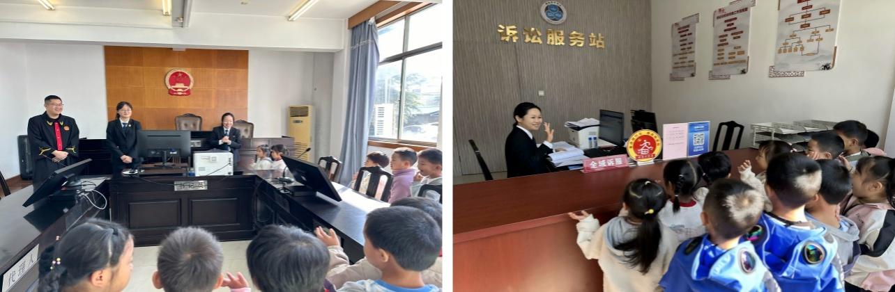 一進入法庭,孩子們便被那莊嚴肅穆的氛圍深深感染。他們滿懷著好奇,仔細觀察著周圍的一切,心中對法治的敬畏與向往油然而生。在工作人員的精心安排下,小朋友們依次參觀了調解室、庭審室,初步了解了法庭的職責以及相關法律常識。孩子們聽得全神貫注,不時提出各種問題,與工作人員積極互動交流。