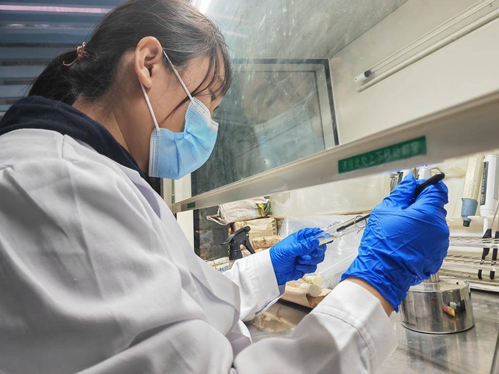 陳玉坤在實(shí)驗(yàn)室內(nèi)進(jìn)行實(shí)驗(yàn) 記者 崔翰超 攝