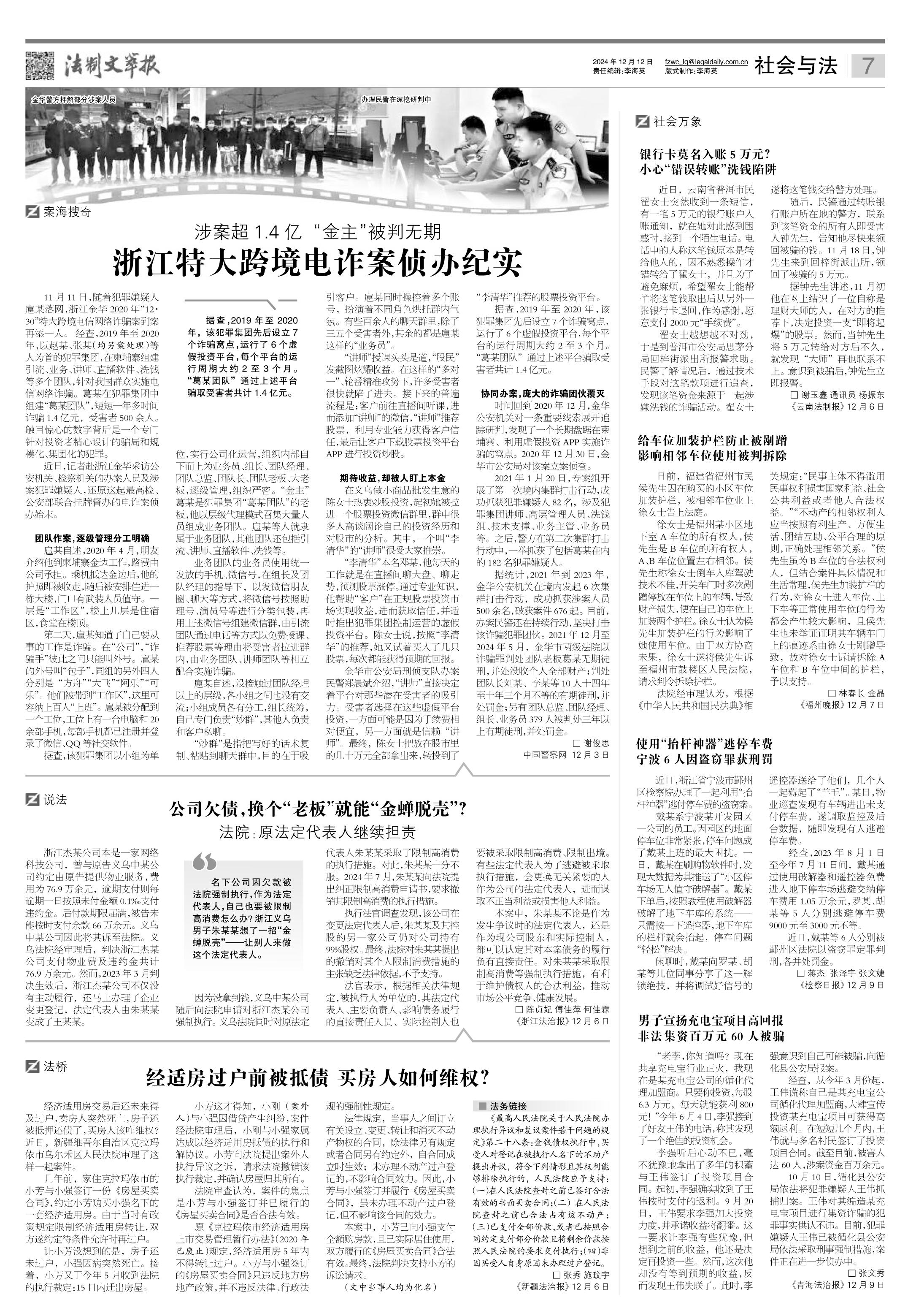 2024年12月12日《法制文萃報》總第2834期7版