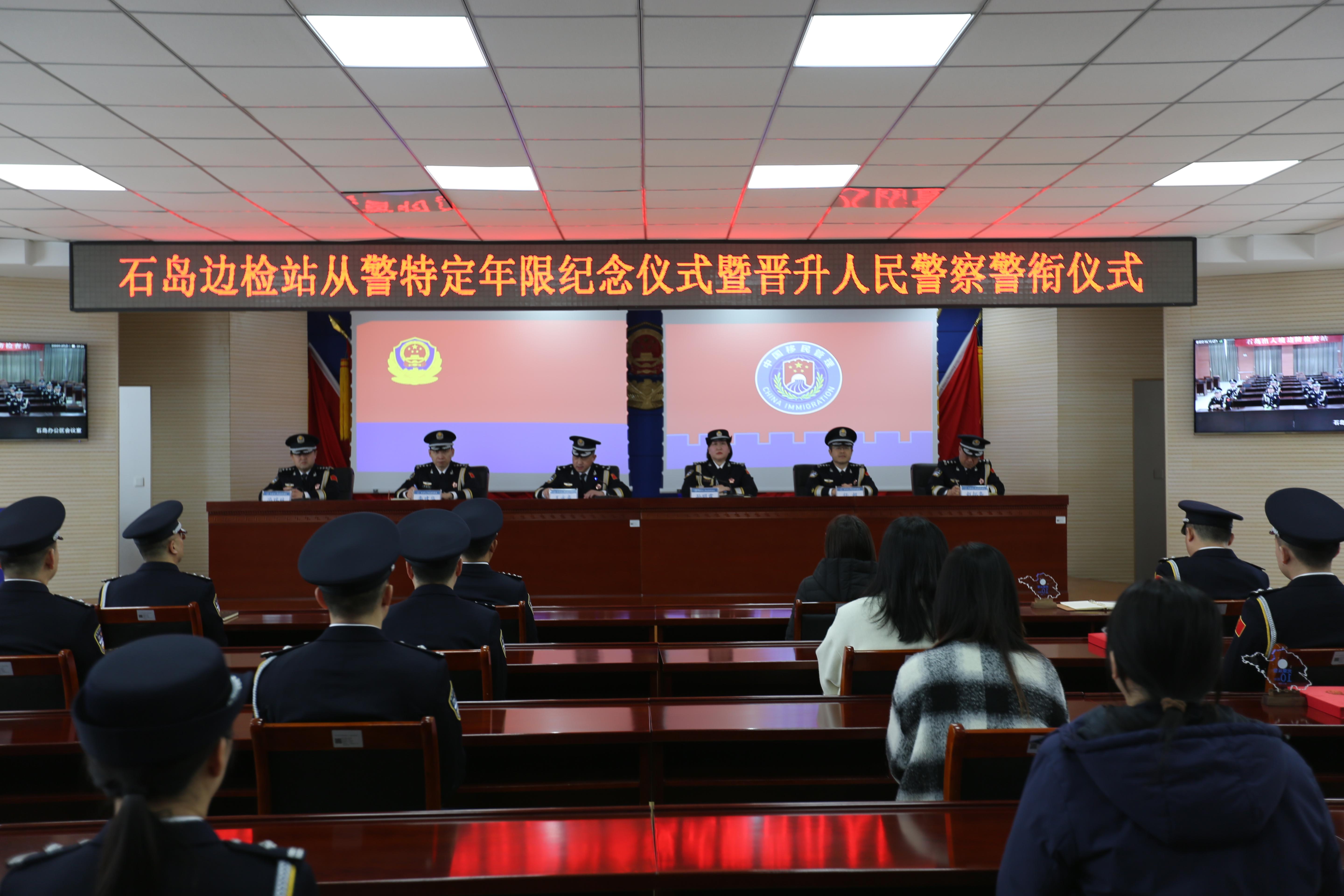 為熱烈慶祝第五個中國人民警察節(jié),進(jìn)一步激發(fā)隊伍凝聚力戰(zhàn)斗力、提高民警榮譽(yù)感歸屬感,1月9日,山東省榮成市石島出入境邊防檢查站舉辦從警特定年限紀(jì)念儀式暨晉升人民警察警銜儀式。