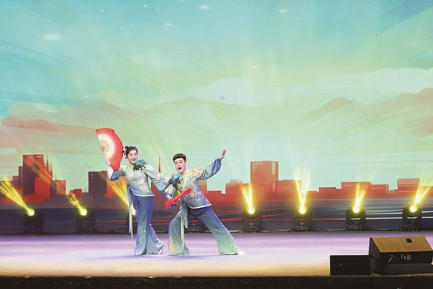 榮獲第十三屆中國曲藝牡丹獎(jiǎng)新人獎(jiǎng)的張朝帥(右)在表演二人轉(zhuǎn)《守望》。(資料圖片)