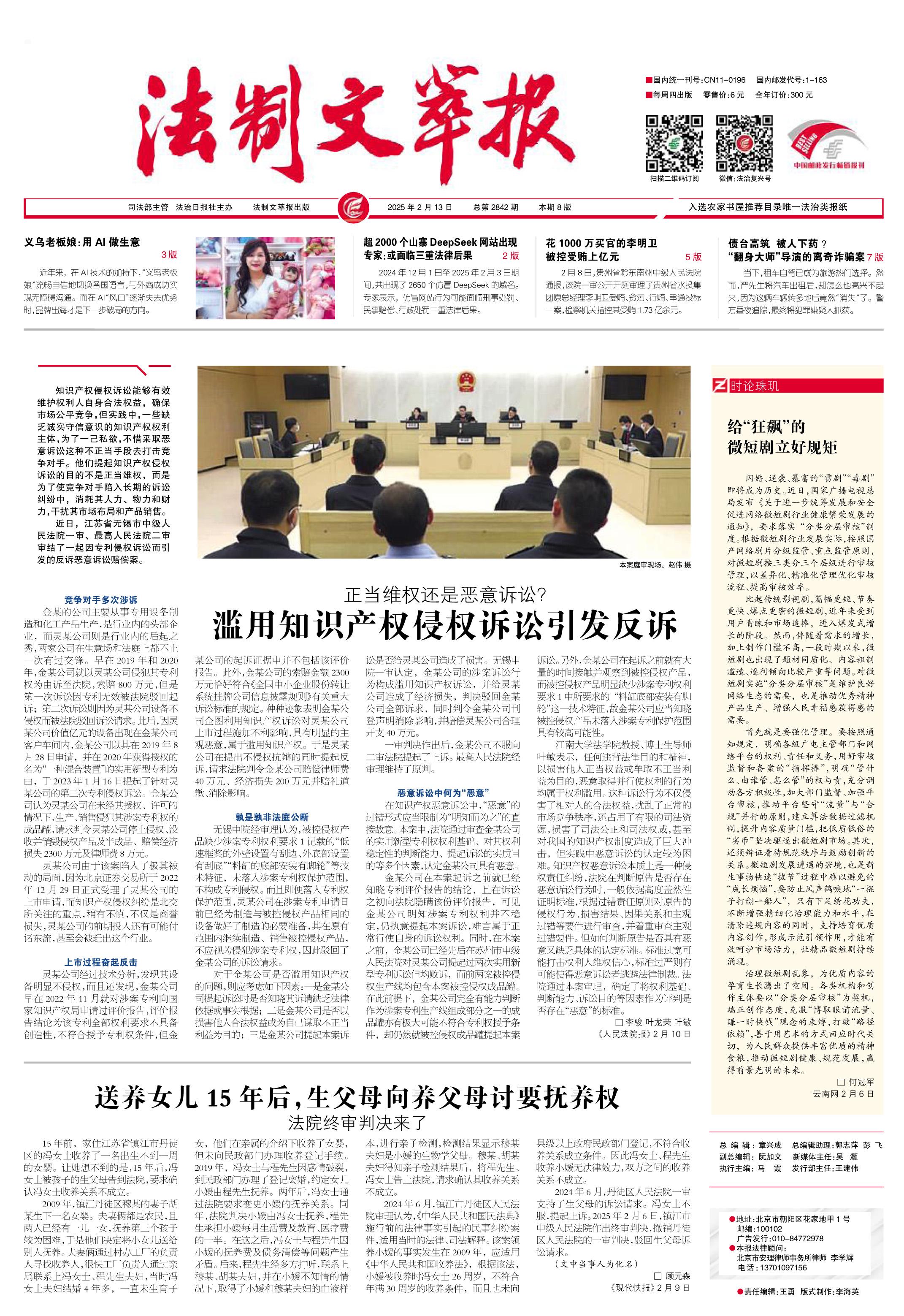 2025年2月13日《法制文萃報》總第2842期1版