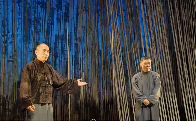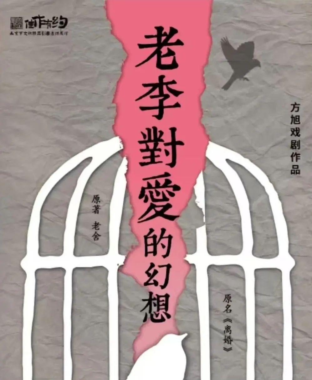 2025年3月末,由方旭、郭笑主演的話劇《老李對愛的幻想》在北京老舍劇場成功展演。該劇改編自老舍同名長篇小說《離婚》,講述主人公小“智識”分子老李掙扎于詩意幻想和庸俗實際,在傳統(tǒng)和變革進退兩難的苦悶中,經(jīng)由一起“政治”暗殺促成自我蛻變的無奈故事。劇中著力表現(xiàn)民國離婚鬧劇風潮下,小市民的情感困境及文化心態(tài),正如老李的舞臺形象:一身灰色長衫,圍著藍色圍巾——灰藍色在老舍筆下是“最不得人心的”,因為“一遇上陽光管保只剩下灰,一點也不藍”。