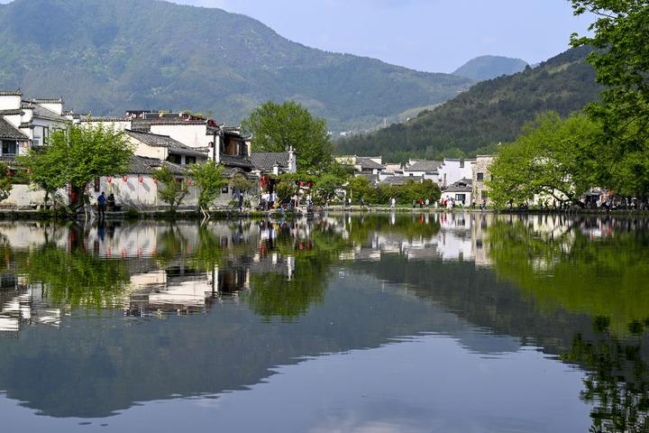 這是4月17日拍攝的安徽省黃山市黟縣宏村風光。記者 徐嘉懿 攝