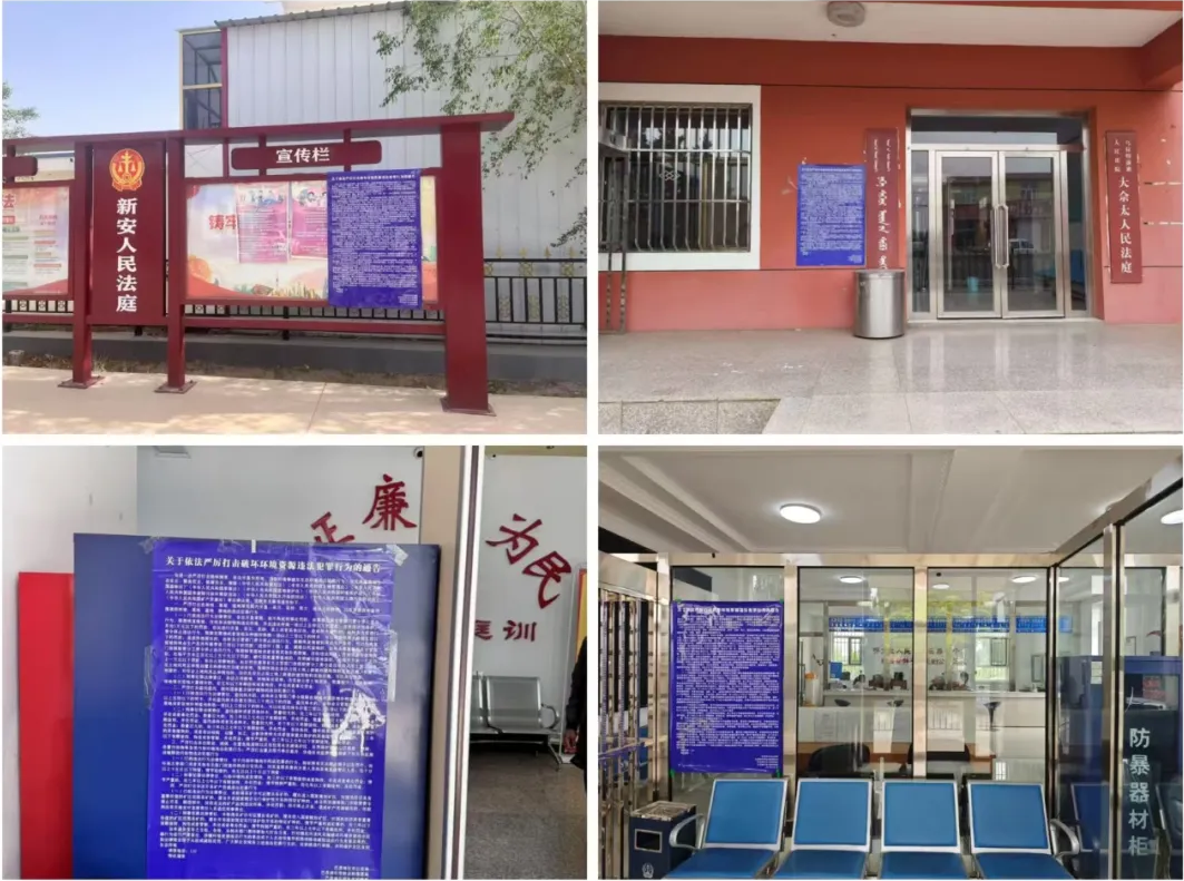 為鞏固宣傳成效,營(yíng)造濃厚宣傳氛圍,烏拉特前旗人民法院開(kāi)展了形式多樣的宣傳舉措。一是利用戶(hù)外LED電子顯示屏圍繞毀林毀草主題每日循環(huán)播放圖片及視頻;二是同時(shí)在5個(gè)基層法庭公示欄等顯眼位置張貼《關(guān)于嚴(yán)厲打擊毀林毀草違法犯罪行為的通告》等海報(bào)10余張;三是積極利用微信公眾號(hào)等多媒體平臺(tái),轉(zhuǎn)發(fā)有關(guān)毀林毀草的相關(guān)文章及法律條文,引導(dǎo)群眾從“被動(dòng)守法”轉(zhuǎn)向“主動(dòng)護(hù)綠”。