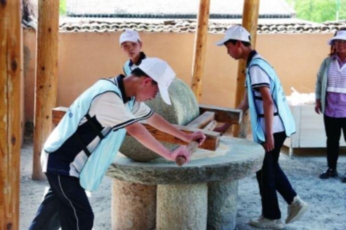 神玉村的名氣越來越響,許多研學(xué)團也紛至沓來。記者到訪時,180多名黃龍縣初級中學(xué)初二的學(xué)生正在神玉村開展研學(xué)活動,他們動手磨豆?jié){、包餛飩、生火做飯,感悟“一粥一飯,當(dāng)思來之不易”的道理。