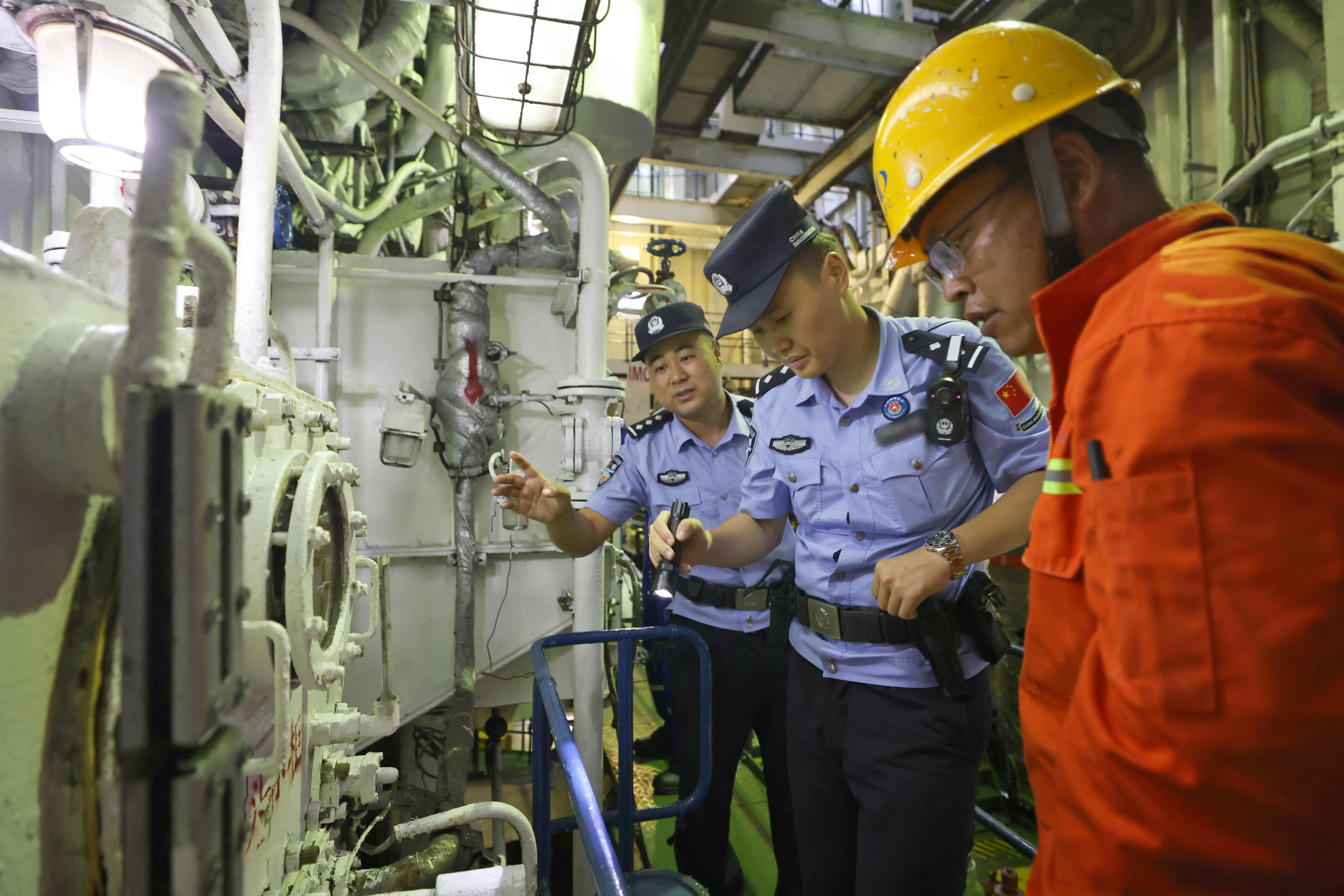 “每一艘船舶出入境前,我們都會(huì)第一時(shí)間對(duì)機(jī)艙、甲板、生活區(qū)進(jìn)行檢查,現(xiàn)在室外溫度達(dá)30多℃,機(jī)艙內(nèi)超40℃,勤務(wù)結(jié)束后,我們的衣服經(jīng)常濕透,即使天氣再熱,我們也會(huì)按照勤務(wù)規(guī)范開展檢查,筑牢海上國(guó)門防線?!痹撜緢?zhí)勤二隊(duì)執(zhí)勤民警閆承鑫說道。