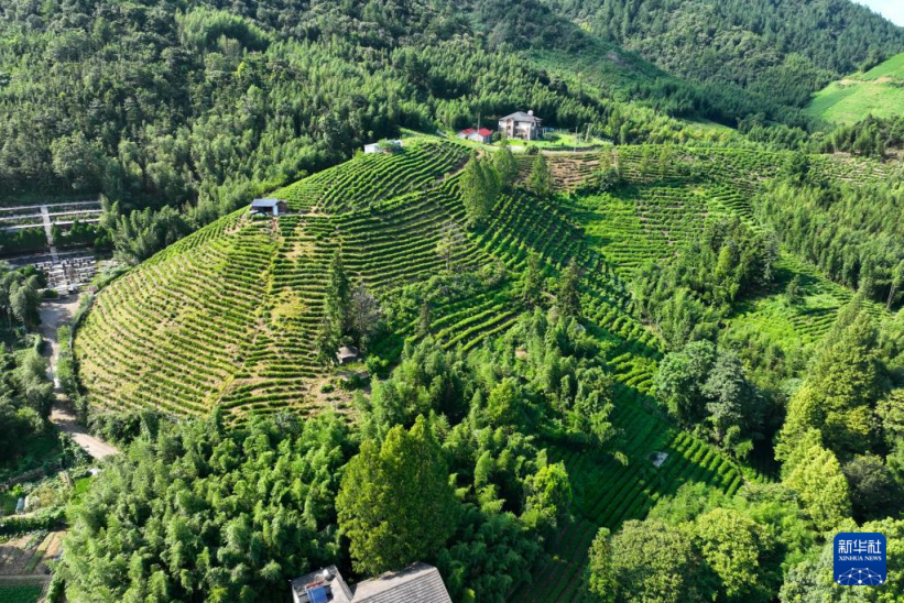 這是8月5日拍攝的浙江省杭州市余杭區(qū)徑山村茶山(無人機照片)。記者 毛竹 攝