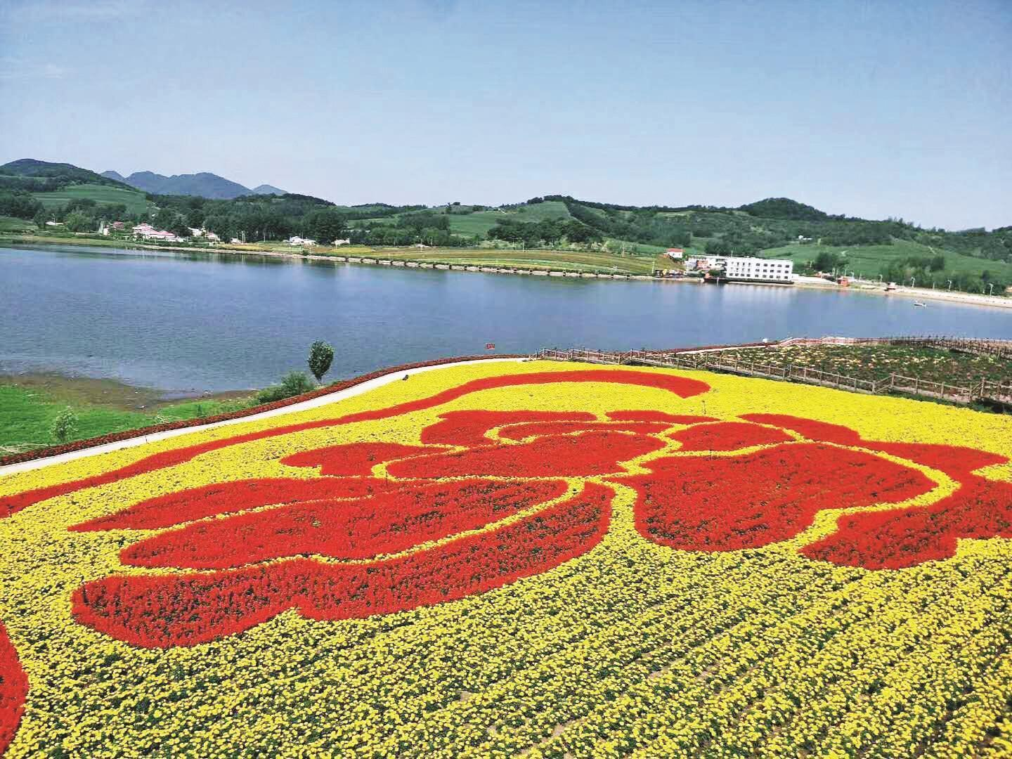 長(zhǎng)春市雙陽(yáng)區(qū)萬(wàn)龍小石水庫(kù)度假村的花海。